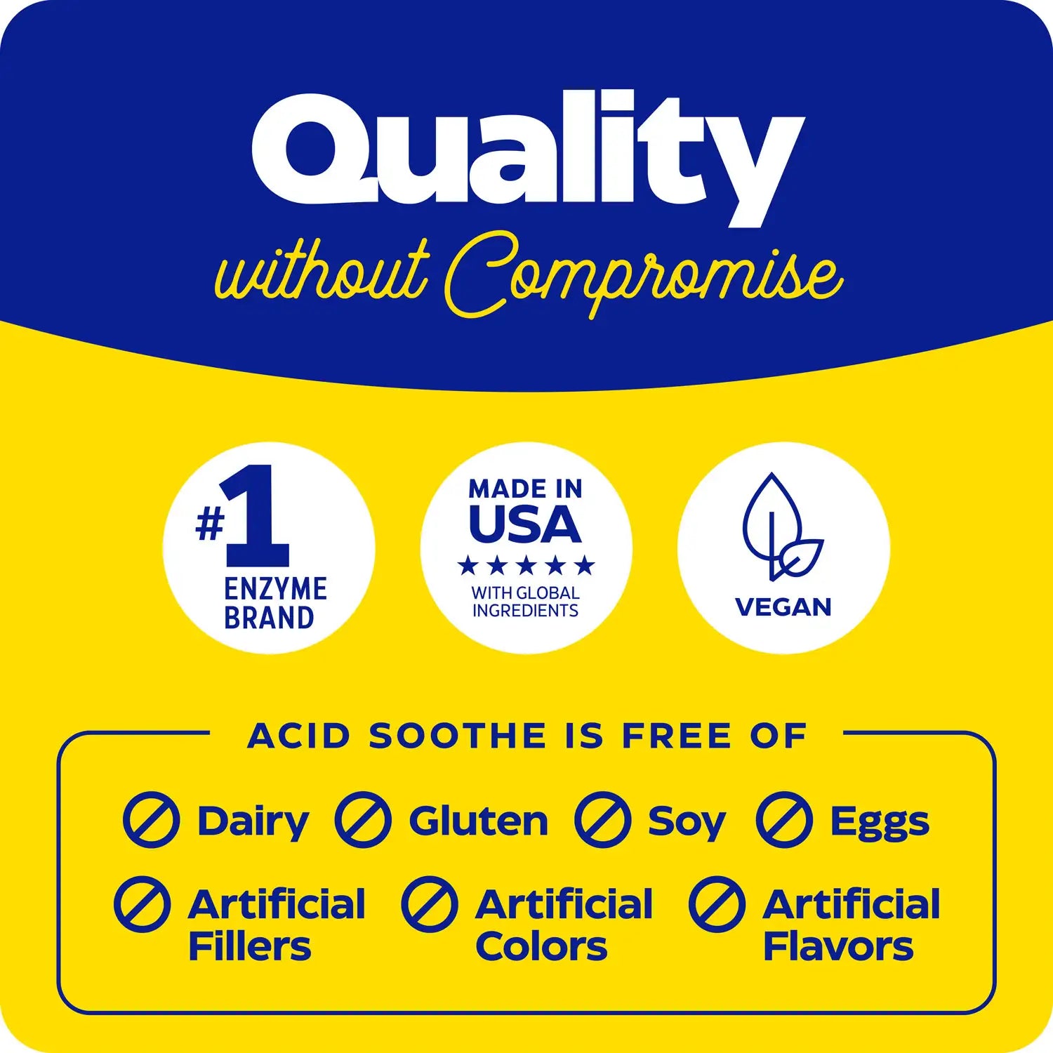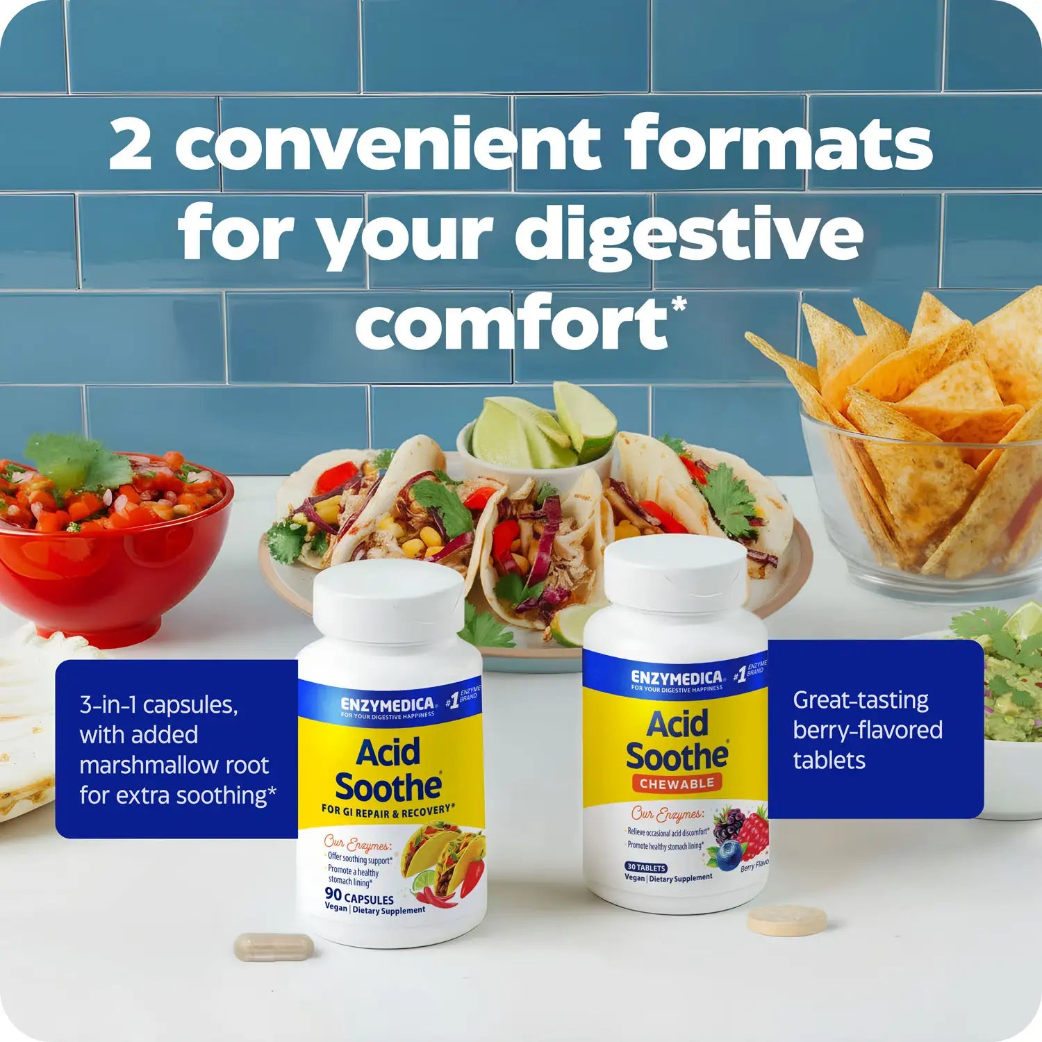 Not all enzyme supplements are created equal, and Acid Soothe® has a powerful formula. Containing Thera-blend™ enzymes, it helps break down troublesome foods like carbohydrates, fats, and fiber*, and protein. With Thera-blend™, multiple enzyme strains are combined, allowing you to receive the benefits at multiple pH levels and across the whole digestive tract.