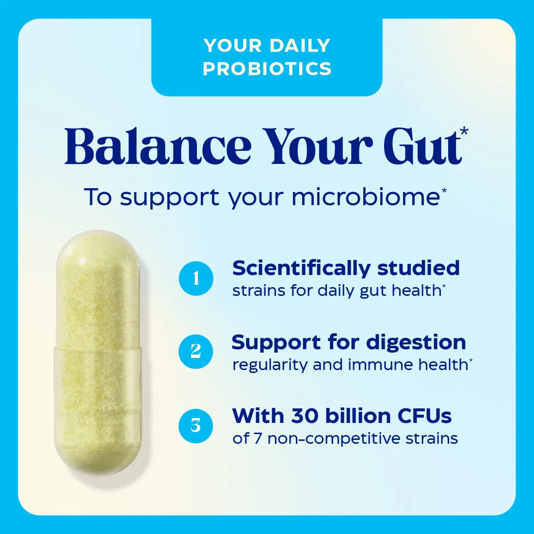- Daily gut health probiotics for digestion, regularity and immune health*